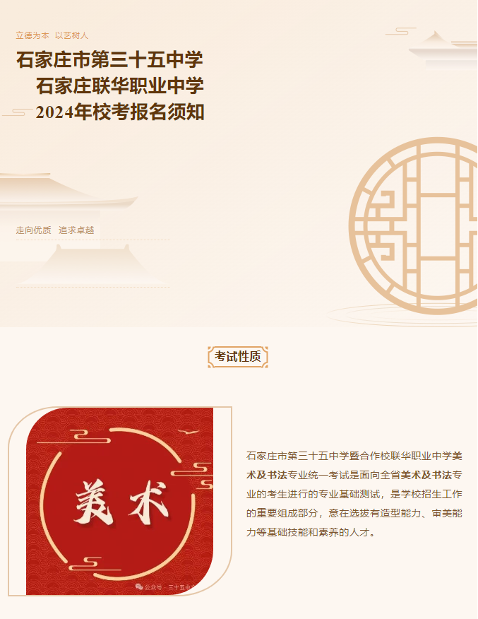【校考报名须知】石家庄市第三十五中学·石家庄联华职业中学2024年校考报名通道开启啦