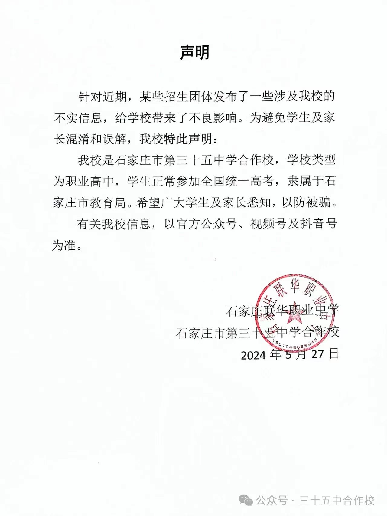 【勇立潮头敢为先·锐意进取谱新篇】—石家庄市第三十五中学暨石家庄联华职业中学2024年校考圆满落幕!