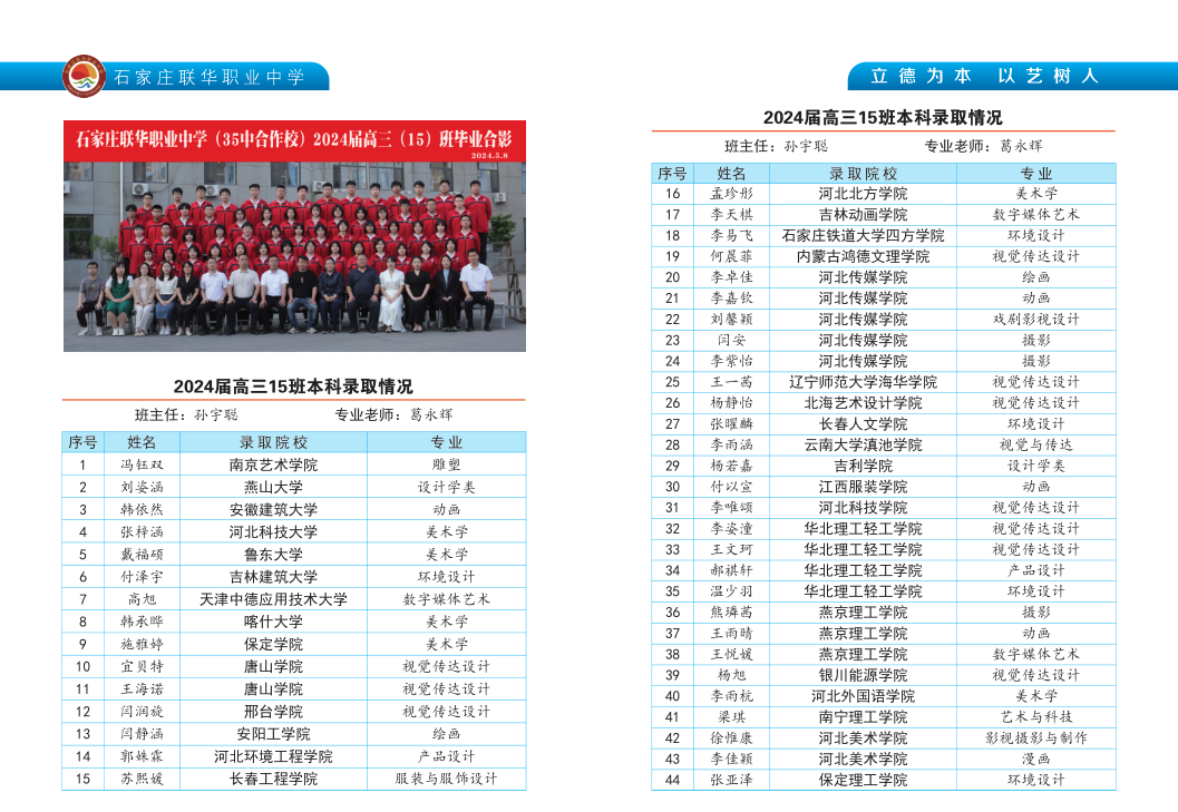 2024届高三各班本科录取情况